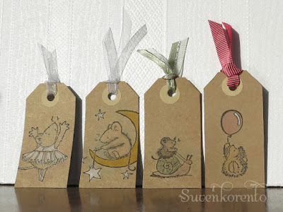 Many original Forest Families dresses are very cute, but time has a toll on them too. Above is a teachers dress, which didn't arrive in good condition. Luckily the stains were off with some bile soap. The red bow didn't suit the dress well, so I changed it to a pink one.